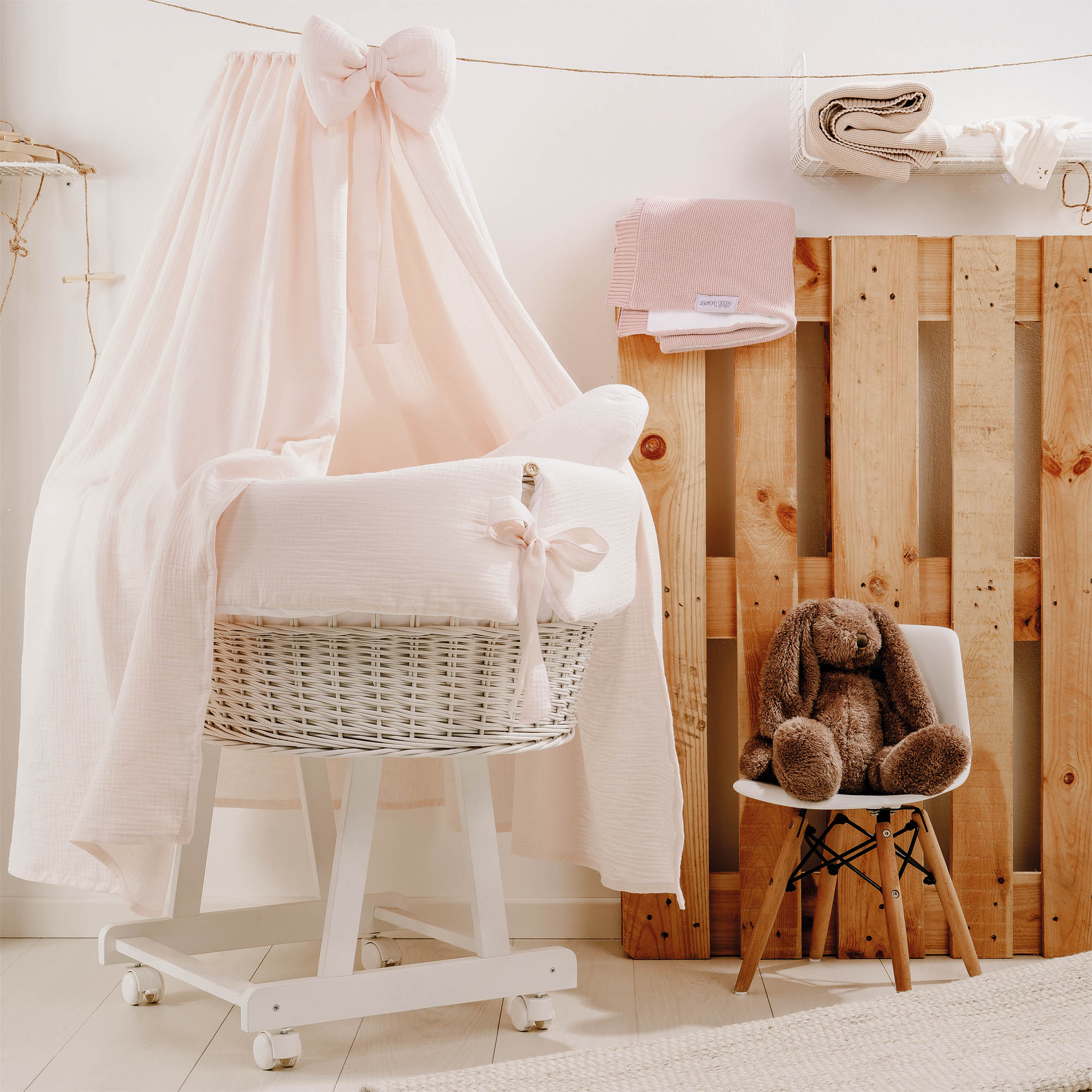 Culla Miss completa con velo, riduttore e materassino – Rosa talco